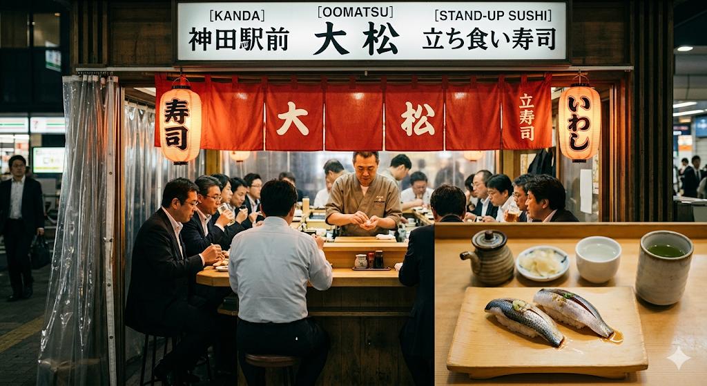【神回】神田駅チカの立ち食い寿司「大松」がコスパ最強すぎて感動したwwwいわし110円からってマジかよ!🍣