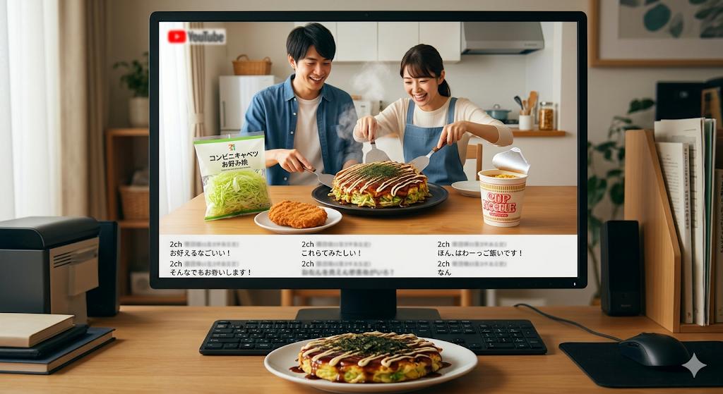 【飯テロ】『ドカ食い大好き!もちづきさん』のコンビニ食材お好み焼きを再現してみた結果www